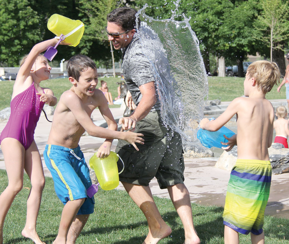 In closing, let me share with you a couple of examples of how we get wet when we play; we have held two Splash and Play Indoor Pool Parties in our community. We have an indoor pool at one of our elementary schools. We qualified for a grant that helped pay for this event, so people can come swim and play for free. By the way, all of our events are free. During warm weather months we always remember to bring out the water bottles to squirt each other and the kiddie pools, so we can get wet when we play. One summer we were closing a street in July and one side of the street lost power, so this two-hour event turned into an entire day of fun and play. People were grilling, there were kiddie pools and sprinklers set-up and kids got out their water toys or made some out of squirt bottles. Children and adults played freely for hours. Just thinking about that play event puts a smile on my face. Playing with water during warm weather is a great way to play.