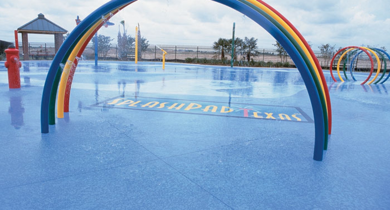 If you know anything about Texas, you probably know that it’s hot—really HOT—for much of the year and that means kids want to be able to cool off when they’re playing outside. The Stone Gate housing community, one of five housing developments built by the Land Tejas Development group in Houston, Texas, features many amenities, including the SplashPad Texas water playground that opened in May 2003.
