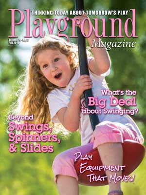Many of the articles in this issue relate the health benefits of movement with the playground equipment pieces that offer the movement. While kids are having fun, they are also developing important abilities provided by movement – vestibular coordination, proprioception, spatial awareness, visual coordination, rhythm, balance, and motor skills to name a few. Who knew?! Restricting children’s play time and fun on the playground could actually hinder important developmental achievements.