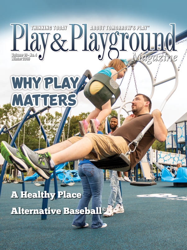Lynn Campanella of Playocracy, along with the Voice of Play (IPEMA), reminds us that playing outside is critical even in the wintertime. She gives us some tips for the best ways to do this. Duncan Taylor introduces us to Alternative Baseball© which is opening doors for people on the autism spectrum and raising awareness for everyone! It is time to plan for the USPlay Coalition Conference on the Value of Play: Play for All. The conference will be March 29 - April 1, 2020. Early bird registration is open now. We will keep you updated on the plans and speakers. In addition to articles on the benefits of play, we also touch on some nuts & bolts of the park and playground industry. Kent Callison of GameTime tells us about a new community park in Memphis. Sean O’Keefe expands our imagination with streams made from stamped concrete around a tidal river.