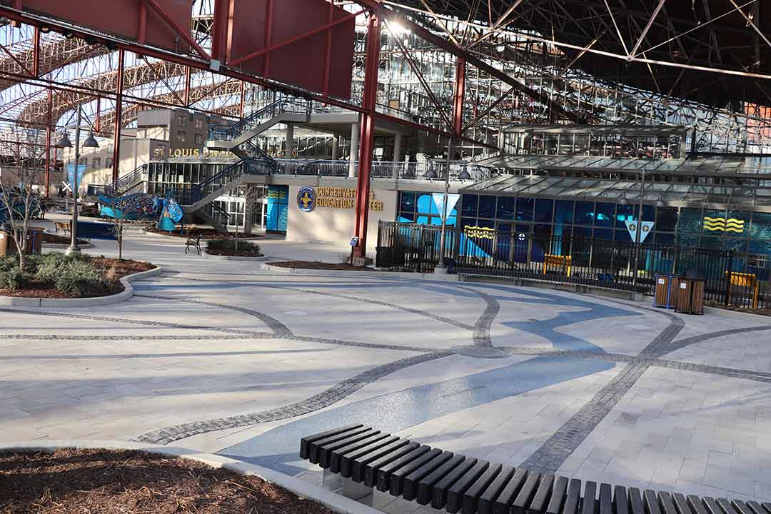 “Thematically reflecting the importance of the rivers and the rail lines as central to the history of Union Station and the prosperity of St. Louis was a strong starting point,” finishes Schumacher. “By using Bomanite Revealed, the plaza design sets up the story of the aquarium’s inspiration before guests even step through the front door in a beautiful informative way that will last for generations to come.”