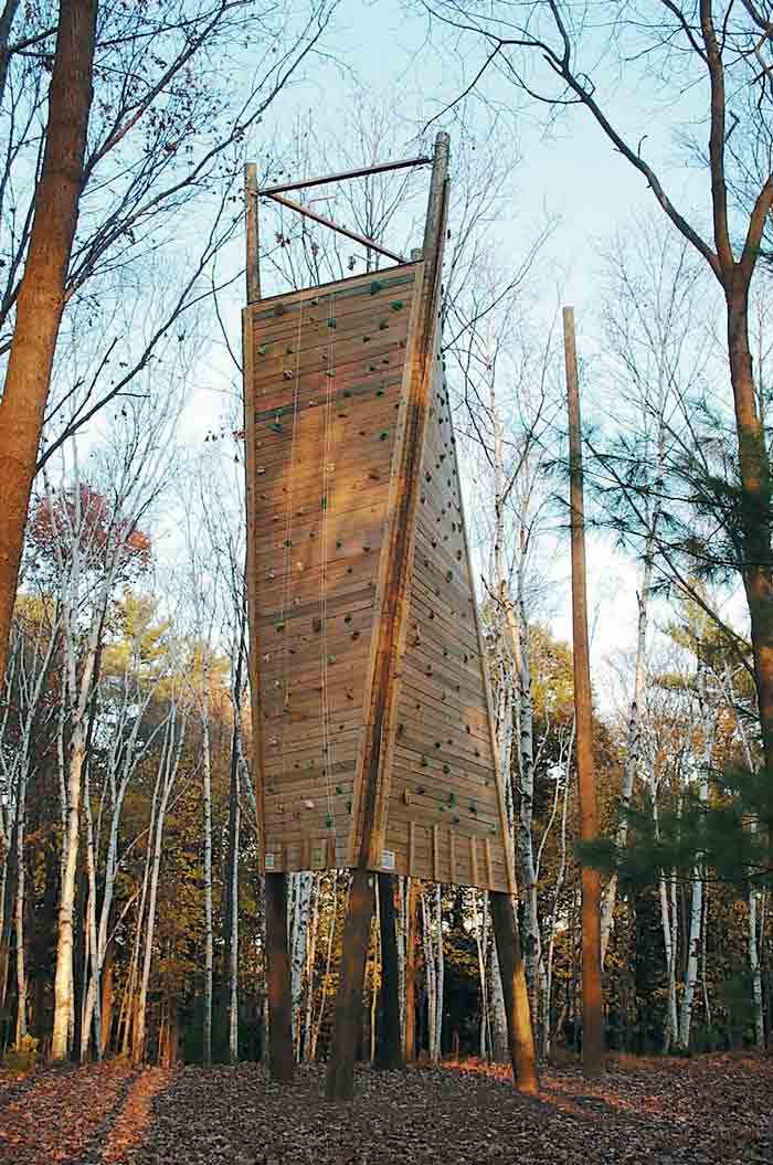 Dapolito’s set-ups include series of utility poles with lines suspended between them for belay activities and platforms for climbing and other high activities. Some of the platforms are more than 20 feet in the air; others are only two feet off the ground.