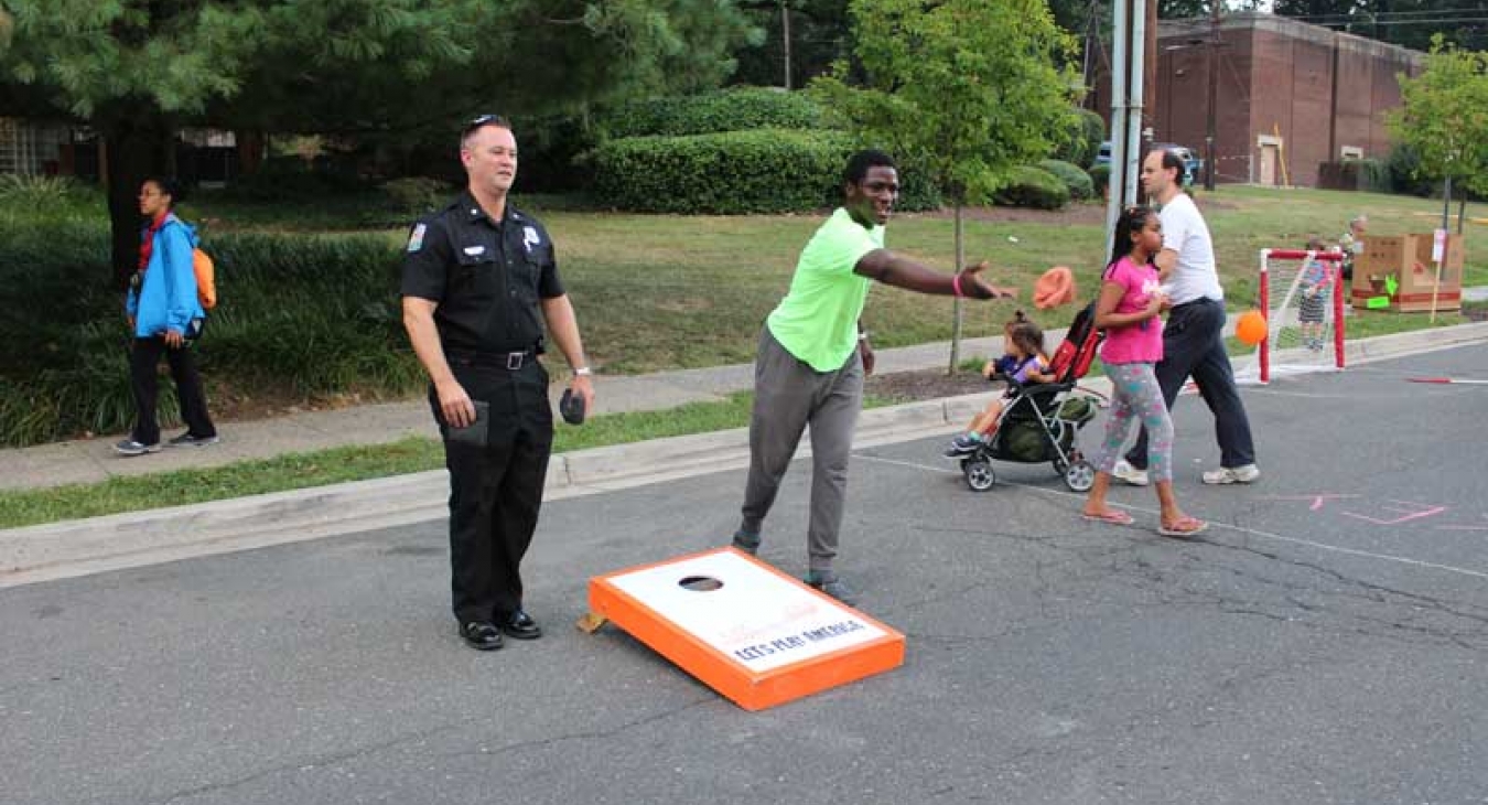 One of the many benefits of the National Night Out event is that the police play with children, teens, and adults. Our Police Chief, Antonio DeVaul was in the dunking booth, - now tell me if that isn’t playful? Several officers played giant chess, corn hole, and other activities. It was a great event and playing helped citizens and police get to know each other by playing together.