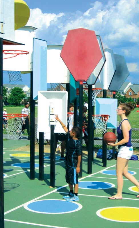 Now with the introduction of Playcourts, designed for youngsters who have outgrown the playground, there exist recreational facilities providing ball-playing sports designed for non-opponent, self-competitive participation. No offense; no defense. And speed, strength, stature, and gender are irrelevant because one doesn’t play an opponent. Participants take on the challenge of the course.