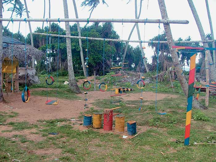 Safety, durability, play value, aesthetics, and accessibility have dictated what playgrounds are in prosperous countries. We can offer elaborate play structures that service more than a hundred children at a given moment. We spend more on unitary surfacing for one play area than Sri Lanka has to spend on a dozen play parks combined.