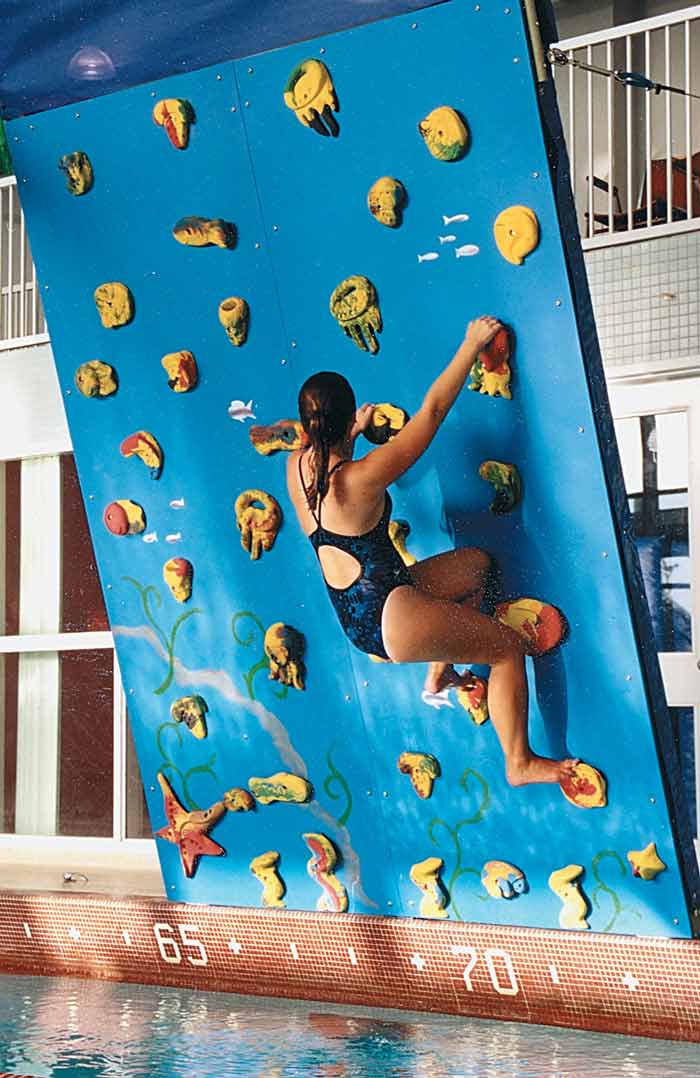 Just when you think you have seen it all, they come up with a new design. They have also created poolside models with many of the same attributes. The wall leans slightly out over the pool so that a child can climb even to the top and fall to the water should they choose not to climb back down. In addition to the model that fastens to the pool deck and a wall behind, there is now a downsized freestanding model, which requires no wall behind to fasten to as it comes with either a bolt-down kit to secure to the pool deck and an optional 120-gallon ballast tank and tray.