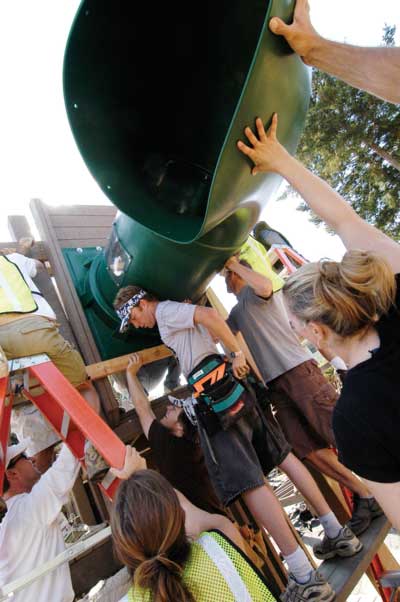 Coming together for a “barn raising” is as old as America. It is only natural that that same spirit has been harnessed to build places for kids to play.