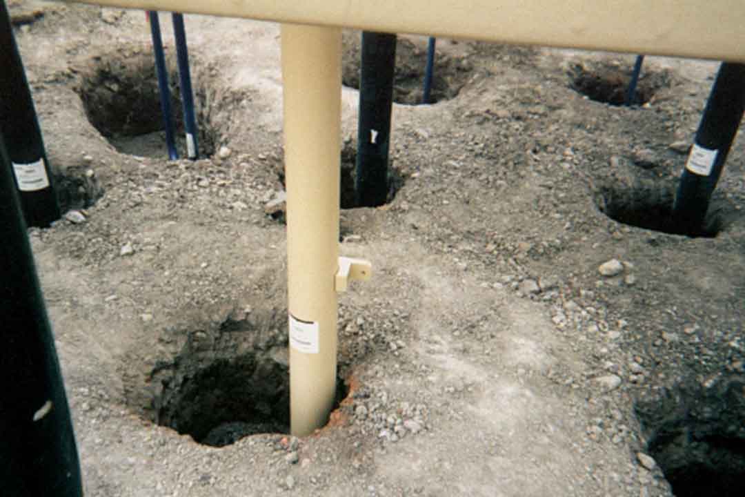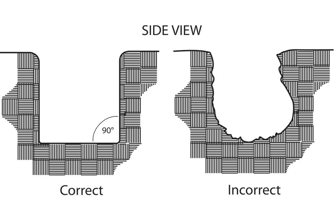 Footing walls should be dug straight down, with a flat bottom, to form a 90-degree angle with the bottom and side of each hole.