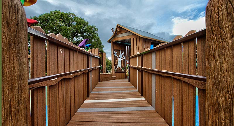 Casey’s Clubhouse slide photos are courtesy of City of Grapevine, TXAll kids deserve a play environment that will blow their minds and get them moving. The focus in recent years has been to move towards play design that allows all kids of all abilities to play everywhere. One or two accessible elements is old-think; it’s just not enough for our kids these days with such a wide spectrum of abilities. It is important to shift our thinking to wholly inclusive play environments where we offer more than just a simple ramp or accessible area for the child with a disability. That’s not to say a sea of ramps is a better alternative. Rather, inclusive design needs to allow all of our children, abled and disabled, the ability to access the same activities and adventures. This is called seamless accessibility integration which fosters environments where all kids can play together everywhere.