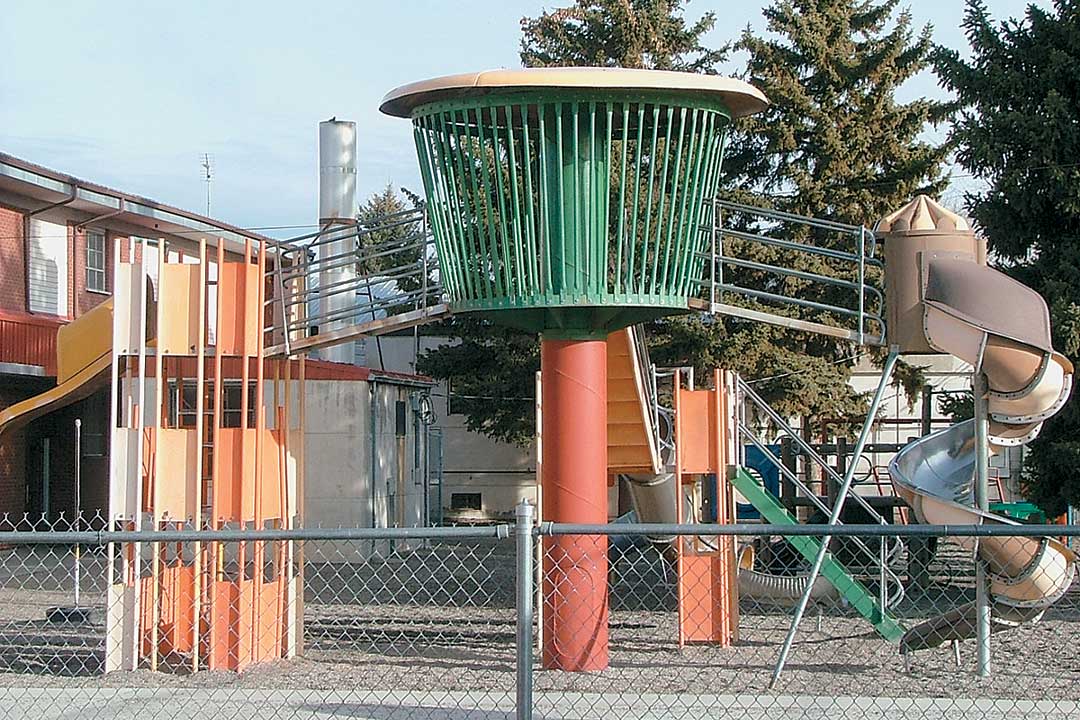 Miracle Recreation, another liberal height proponent, builds the Mega Tower, a fully enclosed hex deck system with a 14-foot slide where kids feel the thrill of height in a completely contained play environment. Miracle even has a Lean-Out enclosure where children can defy gravity while getting a bird’s-eye view of the world 14 feet below. How cool is that?