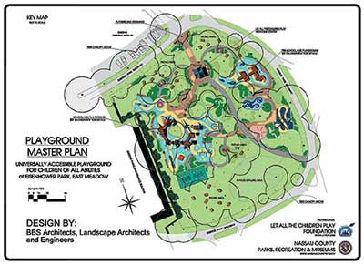 BBS Architects, Landscape Architects and Engineers designed the two-acre Let All The Children Play playground at Eisenhower Park in East Meadow, NY, to accommodate children with limited physical and mental abilities as well as to preserve the old trees present at the site.