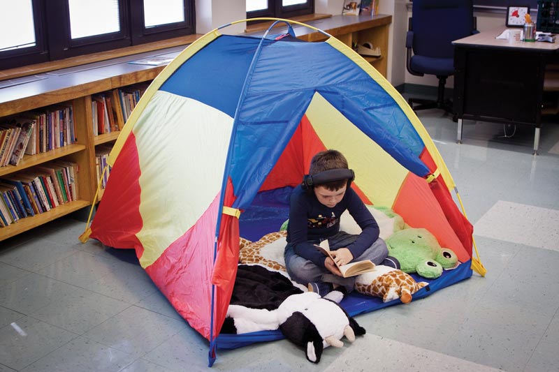 The opposite of sound is quiet. Children often need places to retreat to where it is calm and quiet. Adding a tent or a playhouse, not only are you putting in a cozy space, but you are inviting imaginative play.