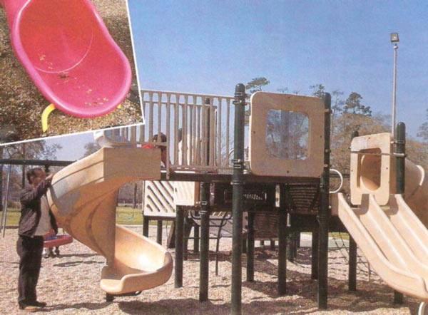 Playground safety inspectors are trained to use special templates, probes and gauges to verify the presence of certain hazards on public playground equipment. Use of these devices are prescribed in the CPSC Handbook for Public Playground Safety and ASTM Specification F"l 487. Some inspectors have come to rely upon these tools too much in their enthusiasm to identify hazards in the playground, rather than limiting them to checking public playground equipment. I have heard reports of individuals using these devices to determine the safety of such items as drinking fountains, fences, picnic tables, park benches, bicycle racks, restroom doorknobs and even toilets! The rationale for using the probes and gauges on these items has been that they are located in the “playground environment” and thus should be subject to the playground safety criteria. Proximity of park amenities and playground equipment does not turn site amenities into playground equipment any more than proximity of a bird feeder to a flowerbed makes the feeder need fertilizer and pruning. There is an old saying”for each task there is a tool” - not all construction can be built with just a hammer. By attempting to evaluate non-playground equipment with these probes and gauges, some safety inspectors have been not only using the wrong tools, they are also applying criteria not intended to be applied for these site amenities, thus inappropriately labeling some conditions as hazardous.