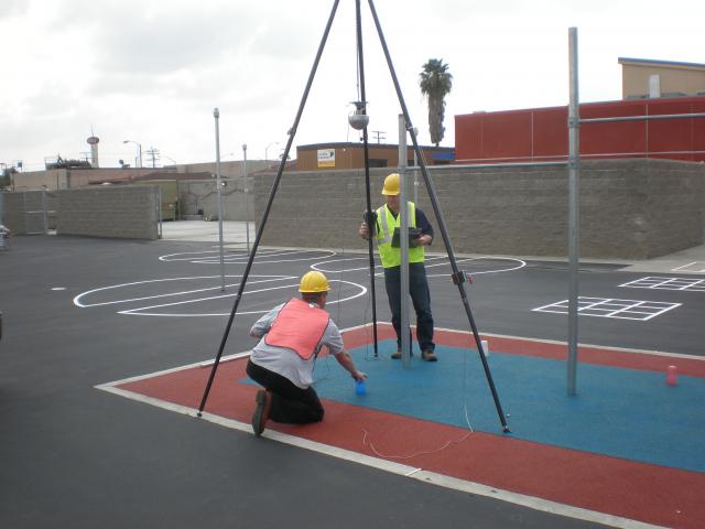 Surfacing G-max testing is a vital part of a complete audit and measures the impact attenuation of surfacing materials. Impact attenuation is the ability of the surfacing material to absorb and disperse the kinetic energy of a fall. Field testing of surfacing in fall zones in a playground should be conducted by trained inspectors using specialized equipment that meets industry standards.