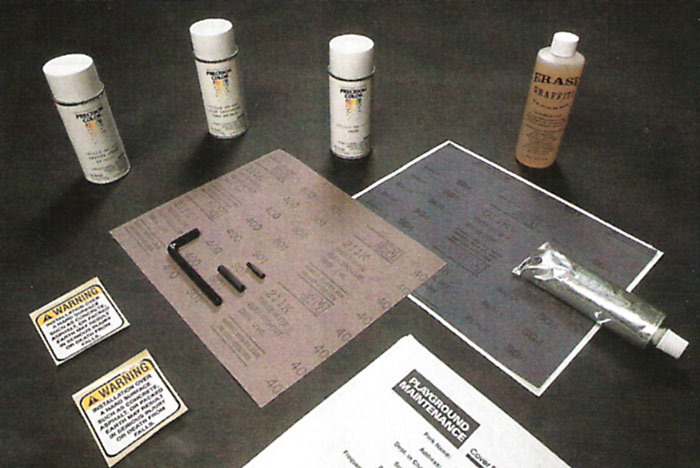 Play equipment manufacturers know what needs to be done to maintain and preserve a playground and keep your equipment safe and attractive, to extend its useful life. Most equipment manufacturers supply customers with a maintenance manual and a maintenance kit to help you start your maintenance program. If you do not receive one, ask your contractor or sales representative to supply one for each structure or set of equipment you have purchased.
