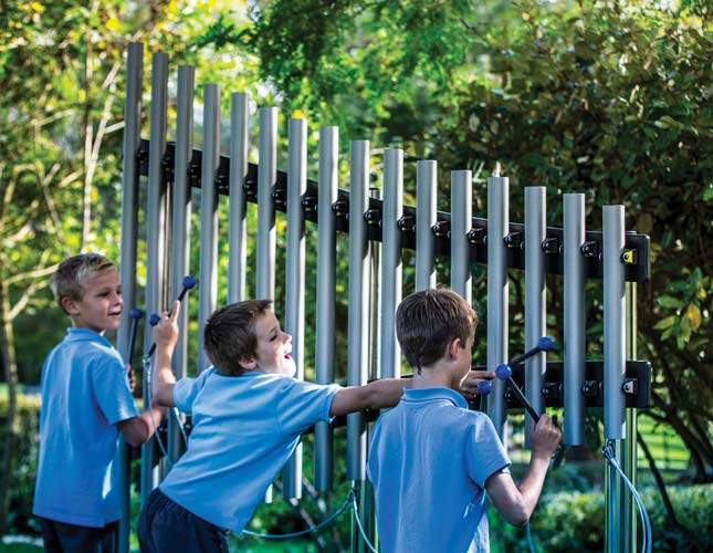 Outdoor musical instruments, whether diatonic or pentatonic, can be installed individually or in groups, no safety surfacing is needed, and some can be wall-mounted, too.