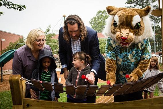 Percussion Play musical instruments, including the Babel drum, Duo and Tubular Bells, were chosen because they enable multiple children the chance to play together at the same time adding to the garden’s accessibility and interactivity. Easy to clean and maintain stainless steel and aluminum musical instruments provide safe, clean play for children with compromised immune systems – and the children love them, too.