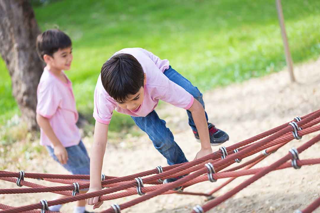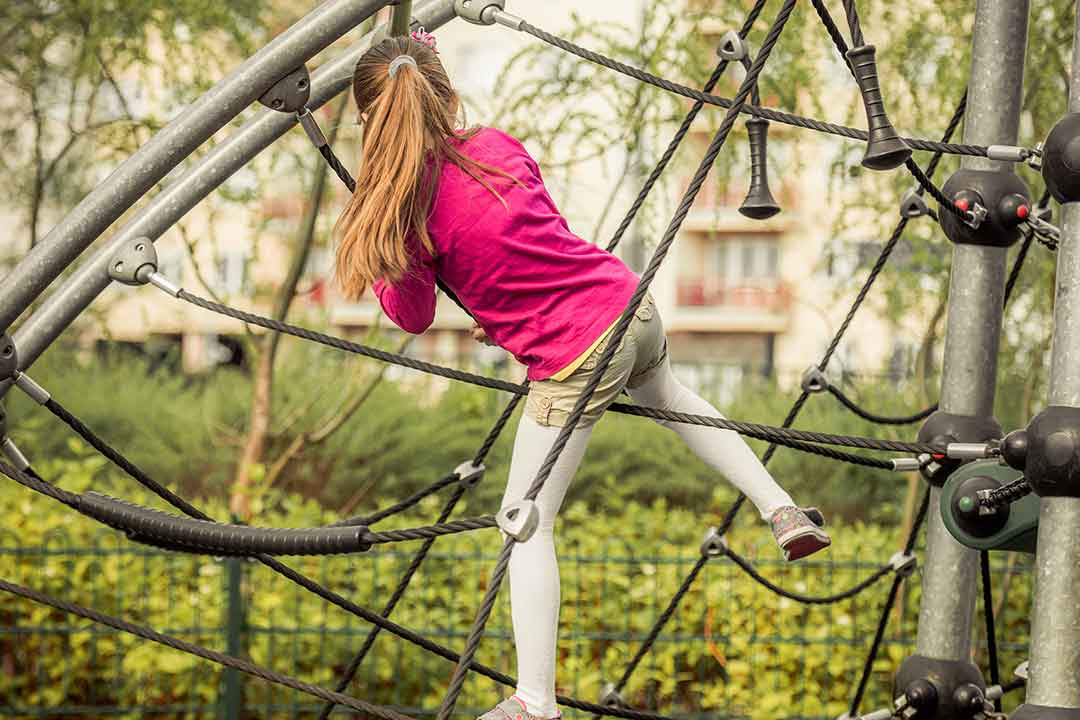 environment in which to do so. Rope-based play, those 3-dimensional spatial net structures, are more engaging and physically challenging for children than traditional play equipment for several reasons.