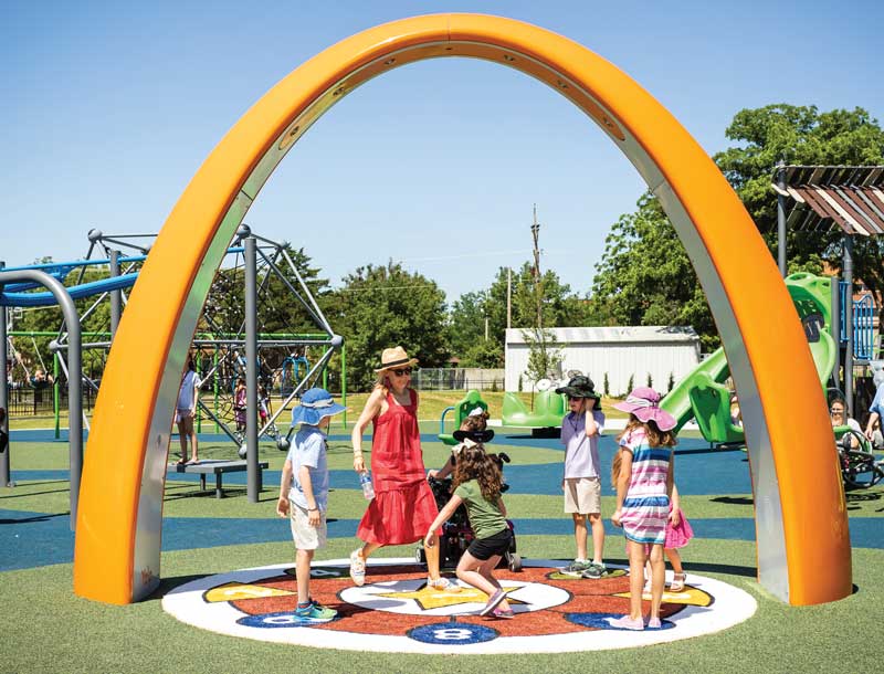 Using these varied play and fitness components will not only give your design its own unique look, but have something that will appeal to all ages, abilities, fitness levels and provide adequate places for caregivers who may need to take a break, or families that want to bring a lunch and stay an extended amount of time.