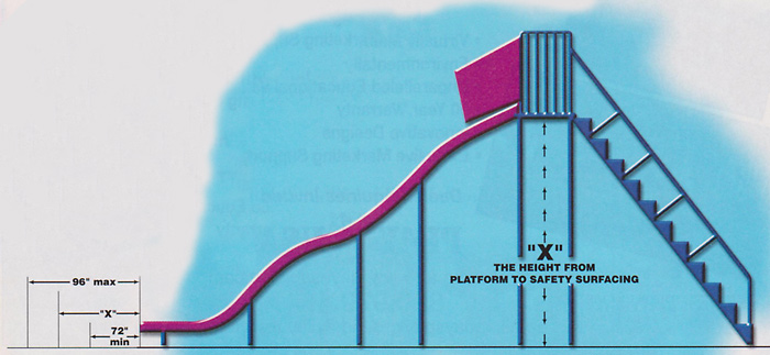 Fall Height-The fall height of slides is the distance between the slide transition platform and the protective surface below. Previously the fall height of slides had not been specified. It is now consistent with the fall height of roller slides. (ASTM F1487-01 § 8.5.7)This stipulation now essentially agrees with that of the CPSC. (CPSC: Handbook for Public Playground Safety - Publication 325. 1997 § 4.3)