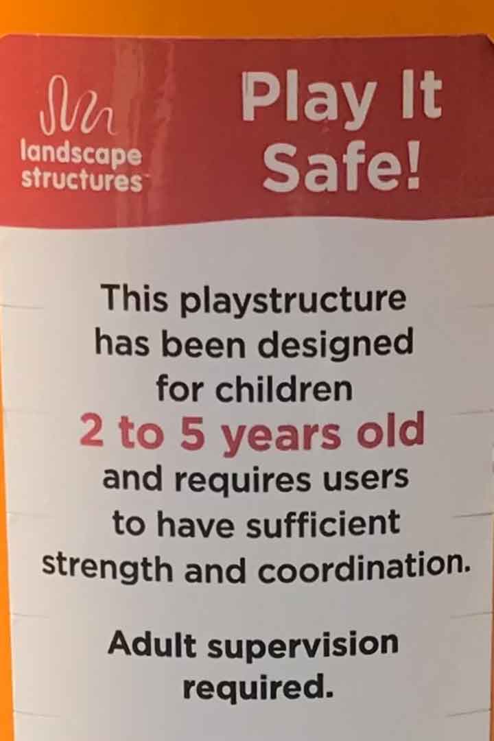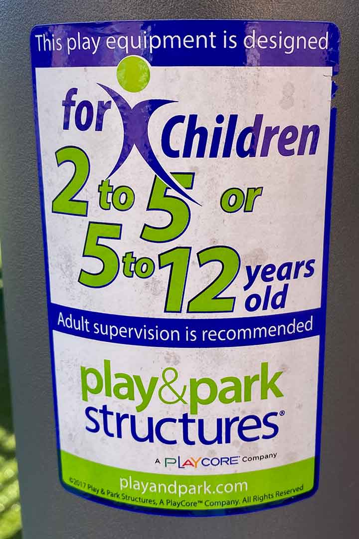 The “age range of users” labels are great for distinguishing what equipment is designed for what age, which represents the size and abilities of the users. So when that mom puts her 2-year-old on a Sliding Pole (a component that is for 5-12 year olds only), you’ll have a positive defense if your label is properly made and placed to argue that she ignored it.