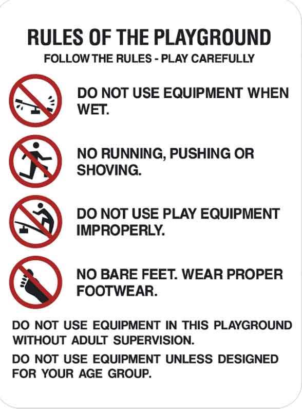 Let’s not forget that we consider the safety of the children first, right? Right. Not to mention that signs/labels have been recommended since the inception (1993) of the American Society for Testing and Materials (ASTM) Public Playground Equipment Standard No. F1487, as well as being recommended in the Consumer Product Safety Commission's Public Playground Safety Handbook (No. 325) since the first version was released in 1981 (see sect. 5 and appendix).