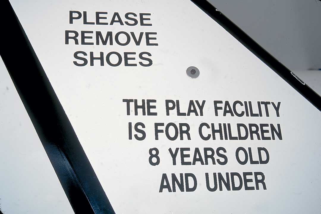 - Age Group signs or labels can either go on every piece of equipment, at the known entrance(s) to the playground, or the 3-point placement method. *CAVEAT: be careful not to install conflicting age range signs or labels. This is more common than you might imagine.
