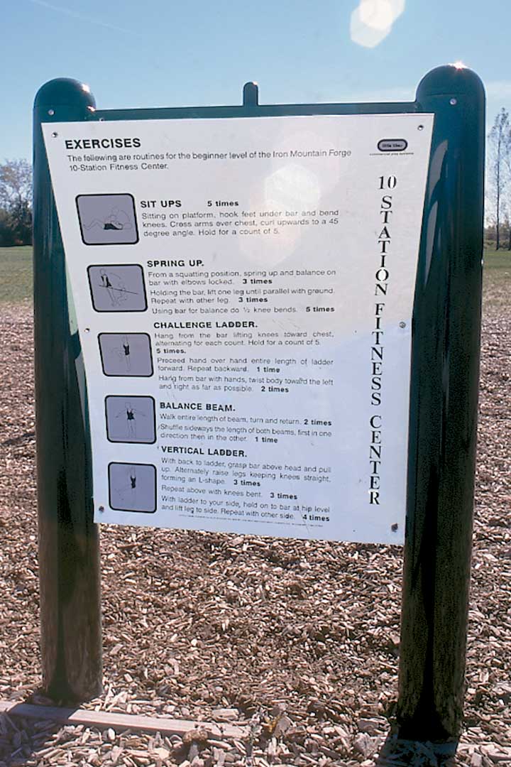 Signs should be placed where caregivers and users can see them before entering or using the playground. A “three-point placement” approach — multiple locations for maximum visibility — is recommended. Mount signs between 36 and 60 inches above the ground for readability by adults while remaining visible to children.