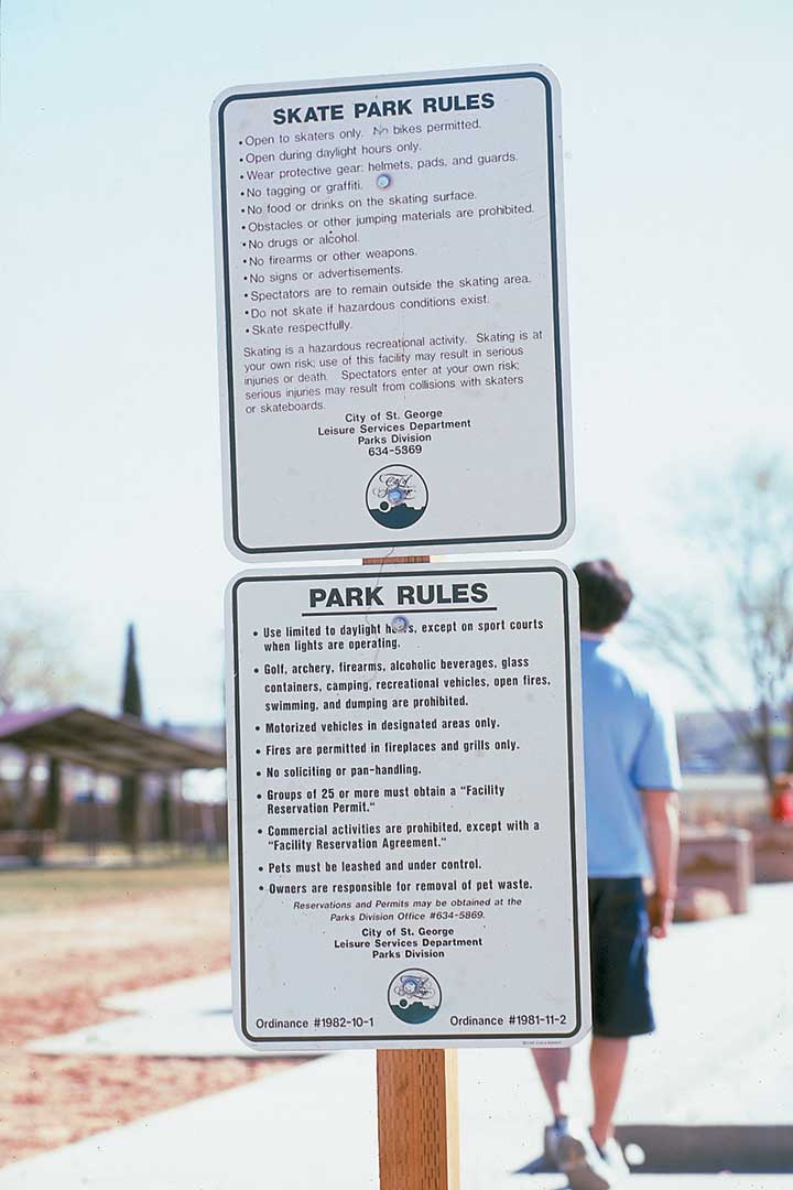 - Other rules that may apply to the particular site (no dogs, drugs, drinking, etc.)