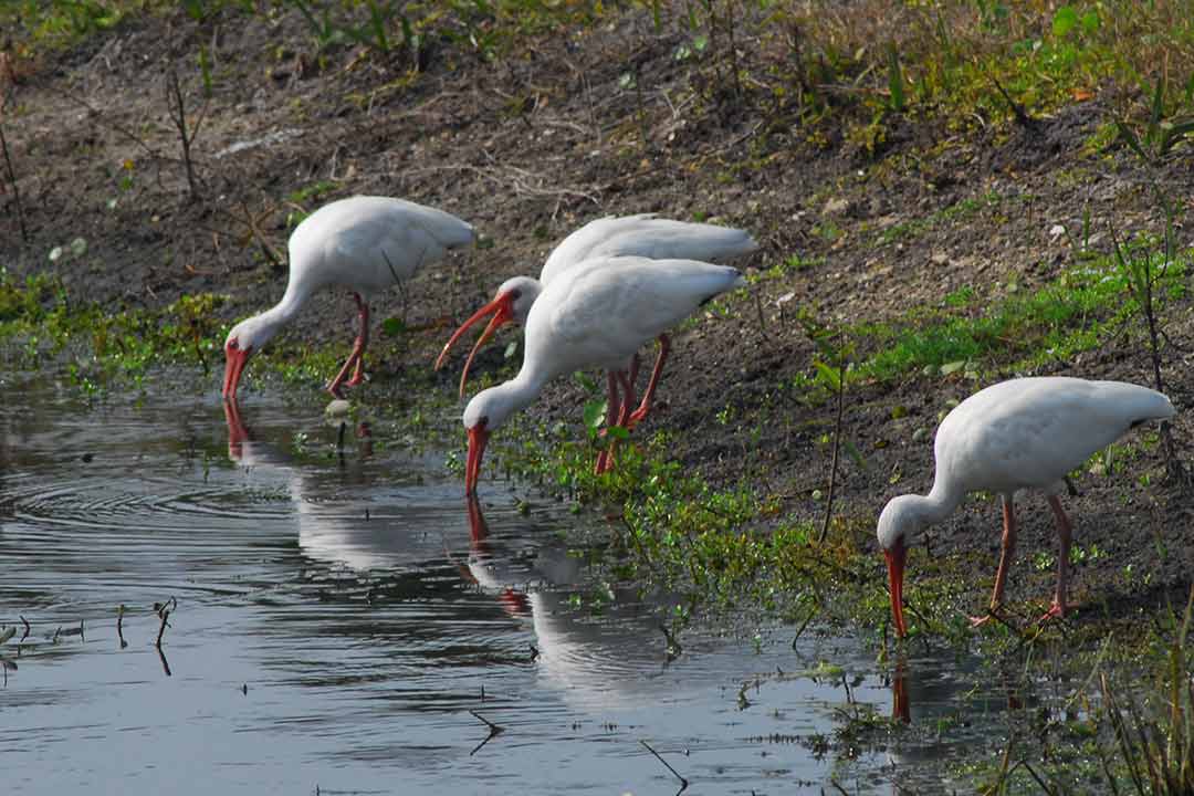There are squirrels, rabbits, and raccoons. There are dozens of wild White Ibis, Great Egret, and Great Blue and Great White Heron. As might be contemplated with alligators and snapping turtles present in the lake, no human swimming is permitted. Fishing, however, is a common activity for osprey and pelicans and for supervised young children.