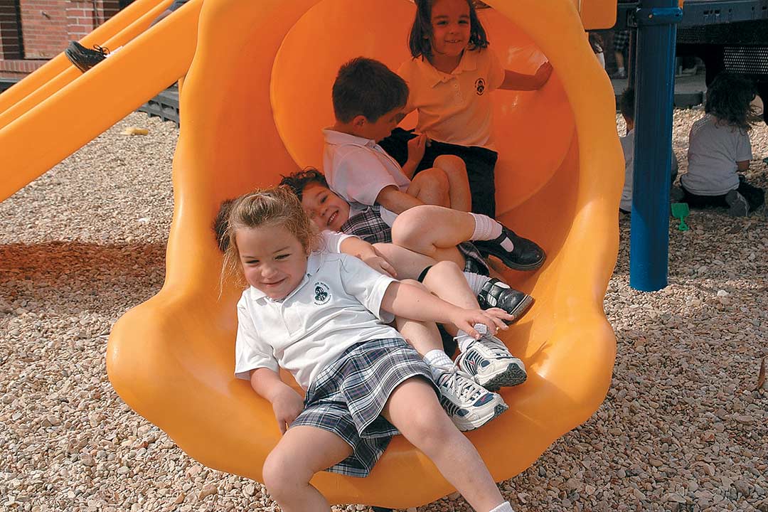 "Our new playground and the refurbishment of our older swing sets are prime examples of this. It was imperative that we, all of us: parents, teachers, and administrators alike, engage in some very creative thinking. We needed to accomplish what we have done within a very limited space and tight budget in a downtown urban environment."