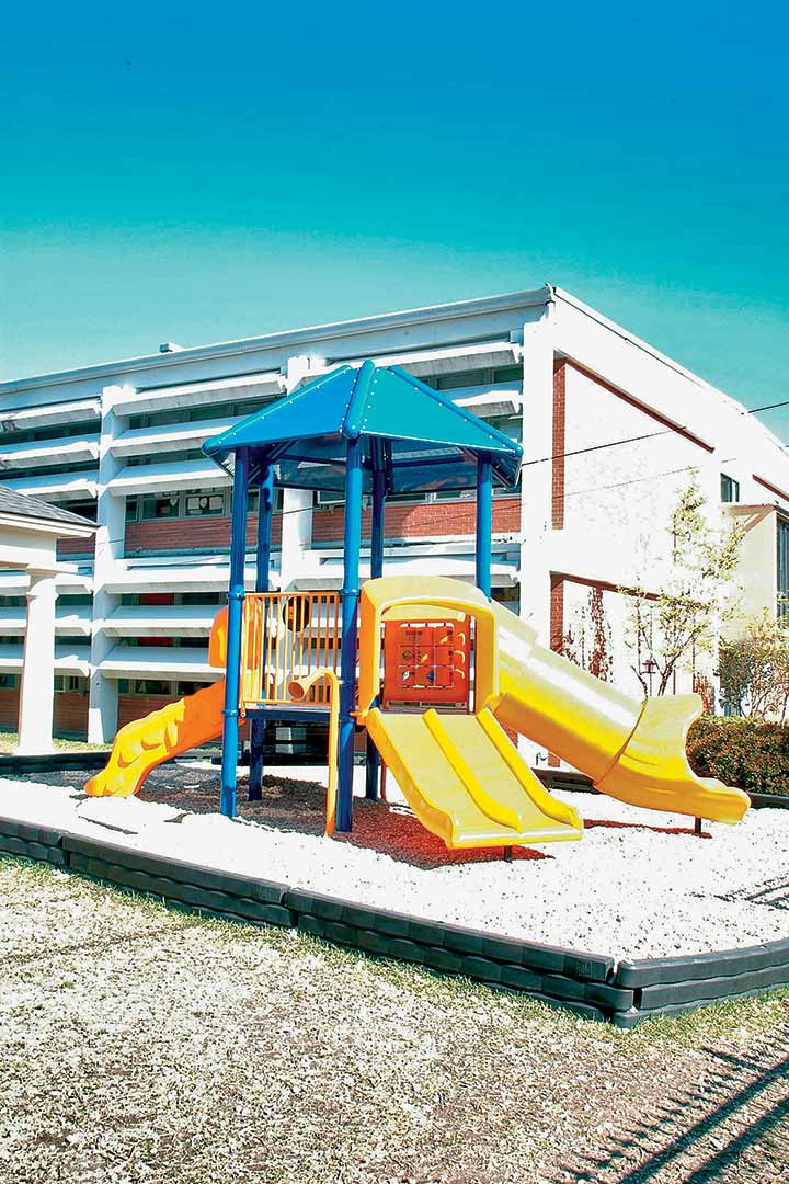 To this end, the guiding forces have installed the new play structures where they would fit best within the space available. This meant incorporating the three new playground units in and around existing school buildings with an eye on the fact that building windows overlook them. From the principal's office to the classrooms, there is an open view for teachers and administrators, of the playgrounds and the children using them.