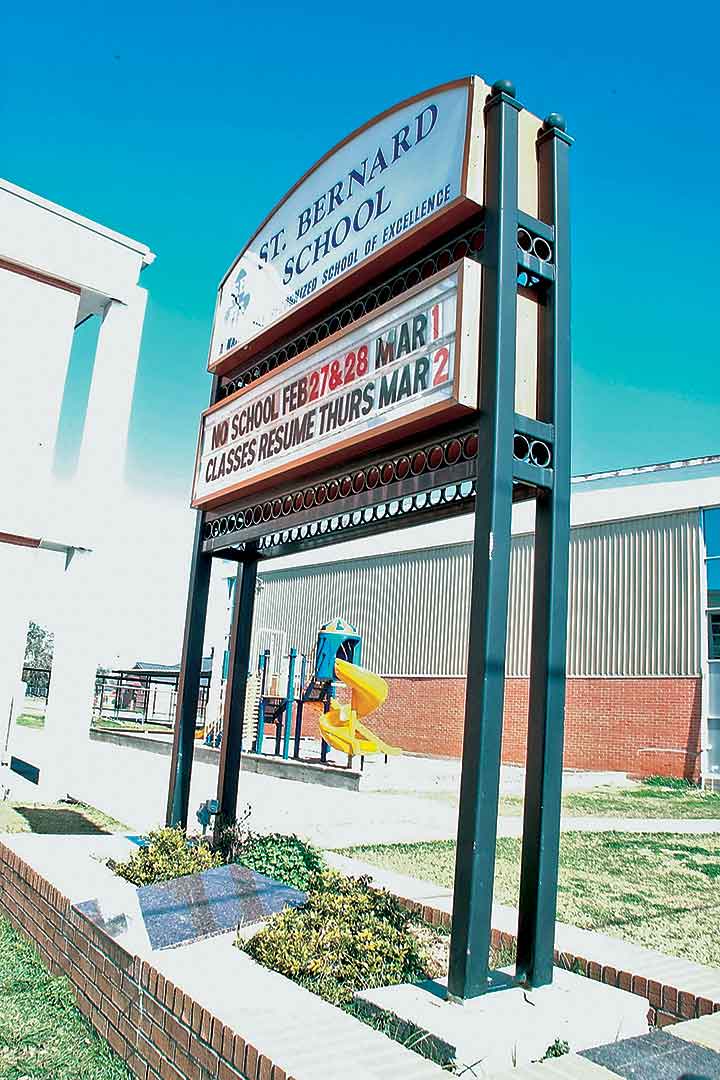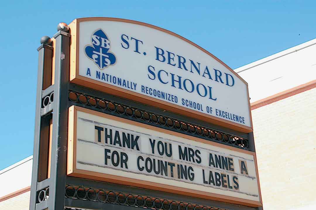 The St. Bernard school originally opened in the 1800s. The high school closed in 1966 and the elementary school shortly thereafter. In 1982 a group of citizens banded together and brought about its reopening as an elementary school only. At first, this included only grades one through six. Later, a junior high was opened. Because of current positive economic conditions, some in the community also have dreams of one day reinstituting a high school. At the present time, the elementary school continues to grow and, according to Principal Breaux, they still have room for some student body expansion.