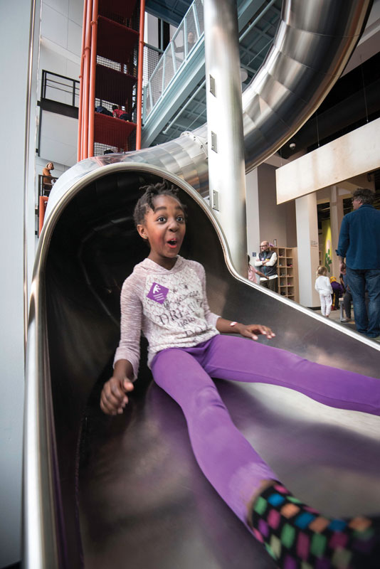 If you love twists and turns, you can’t do much better than The Scramble. This amazing, four-story vertical adventure with its one-of-a-kind spiral slide just opened June 7th at Minnesota Children’s Museum in St. Paul. Yet, there’s also a thrilling, behind-the-scenes story about what it took to get the 17-foot slide from Germany to the Twin Cities in time for the museum’s grand opening.