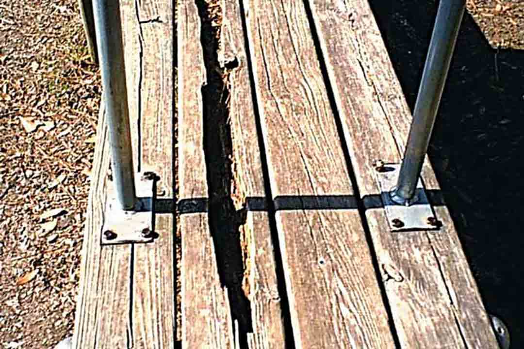 As playground equipment ages and weathers, the materials used in its construction increase their potential for deterioration. Unless carefully monitored and maintained, the physical properties of these materials weaken until the materials become easy to break or structurally fail.