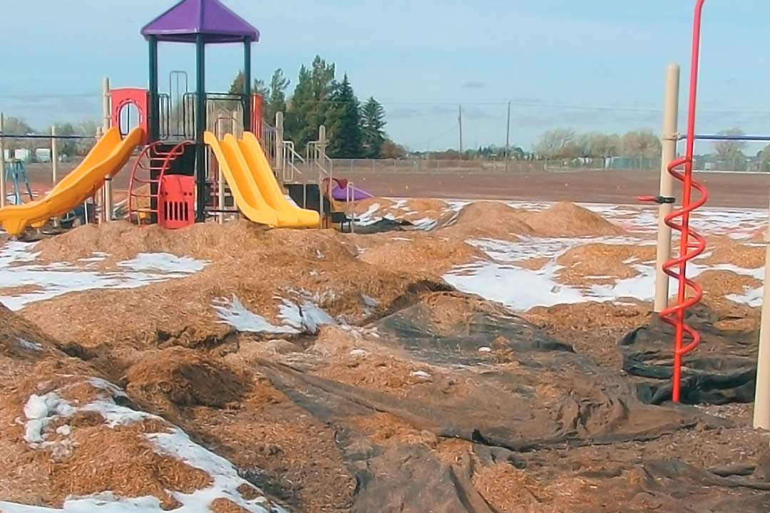 Take a look at the photos that accompany this article. The contractor decided it would be easier to install the drainage, fabric, and surfacing before installing the playground equipment. When the play equipment installer arrived, the contractor jumped on his tractor and proceeded to move the wood surfacing, creating a mix of gravel, fabric liners, and engineered wood surfacing mixed together. Essentially, the contractor ruined the engineered wood surfacing, which is a costly mistake.