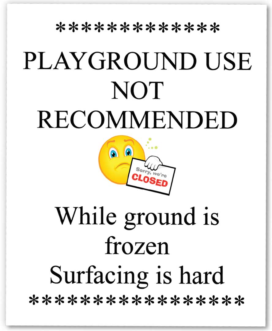 Bob Zeager, Director of Surfacing Products, Zeager Brothers, says that regardless of the type of playground surface, he would recommend signage to warn people about playing on frozen surfaces.