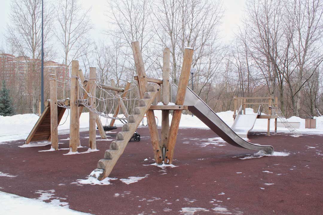 Although ASTM F1292 (the standard for impact attenuation of playground surfaces) does require impact testing at temperatures below freezing, those tests are performed in a lab without the variety of precipitation that winter weather brings. In the field, precipitation becomes a factor that is constantly changing and can’t be consistently replicated in the lab. Even if it could, there isn’t much to do about it apart from drain systems or roofs. Surfaces will become less resilient in freezing temperatures, especially when you factor in precipitation and/or poor drainage. Put a good drainage system in, put up signage, and consider removing some things like swings for the winter.