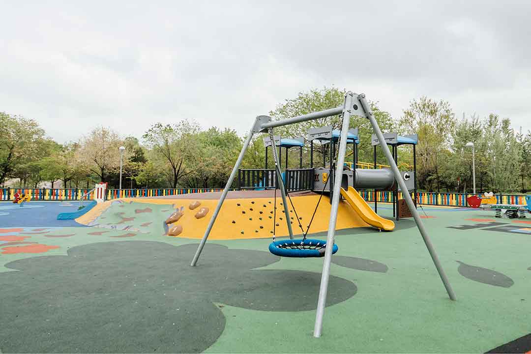 Another maintenance issue is the wear and weathering of unitary surfaces. Just as you must replace your worn rubber tires on your car, the same applies to rubber surfacing products. Every so often certain areas need to be replaced. Rubber is a soft material that can break down due to friction and movement. Many unitary surfacing manufacturers supply a protective coating of urethane that helps prolong the life of a rubber surfacing much like a seal coat on asphalt. Your maintenance arsenal may also need to include patch kits to repair and replace high-use areas such as under swings and slide exits.